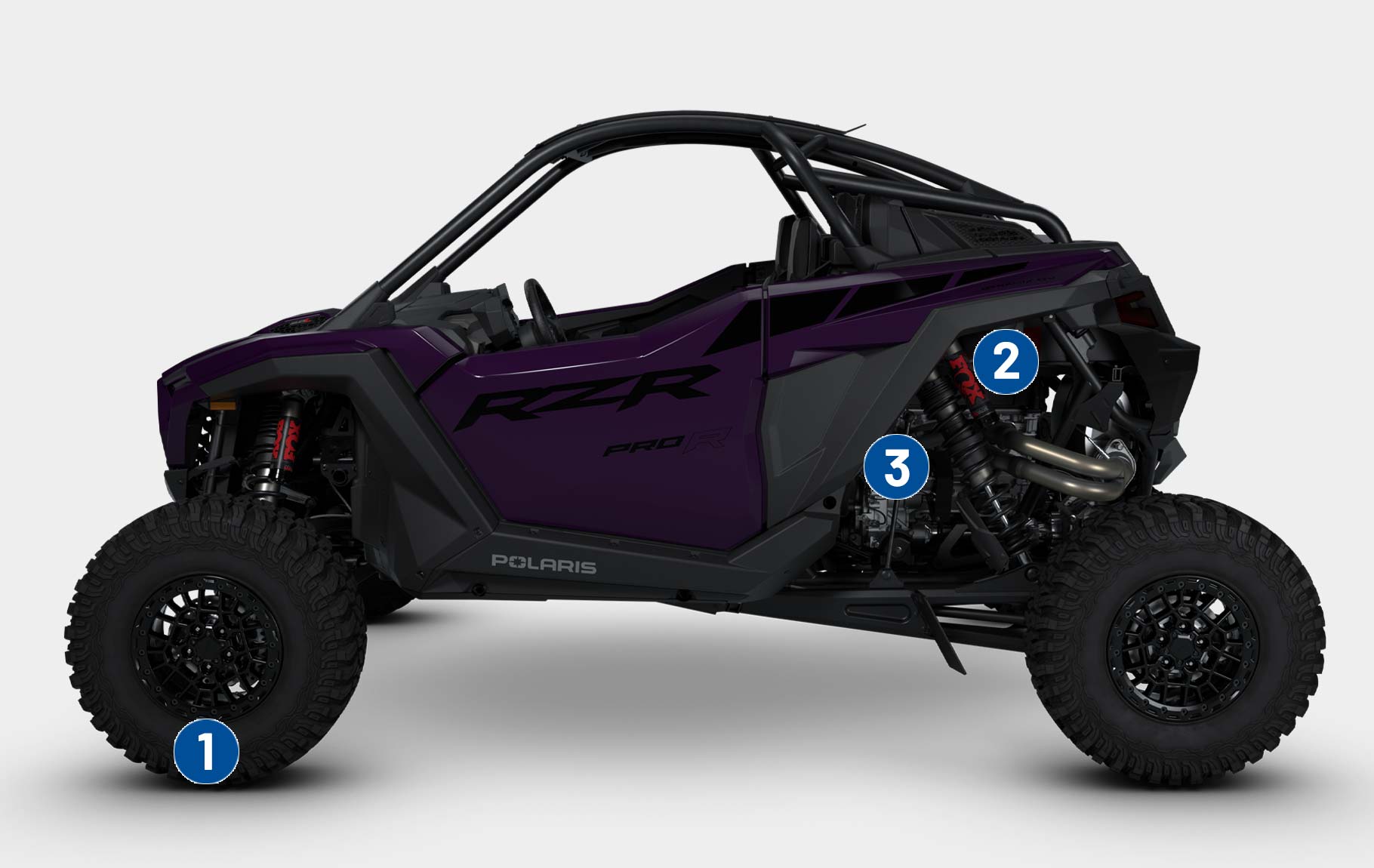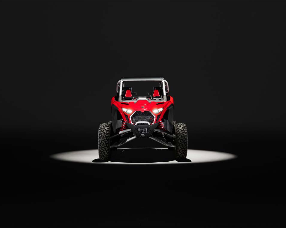 Chega e destaca-te com o design arrojado do RZR Pro R – oferecendo ainda mais estilo e desempenho para vencer em qualquer terreno.