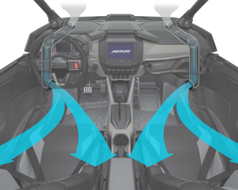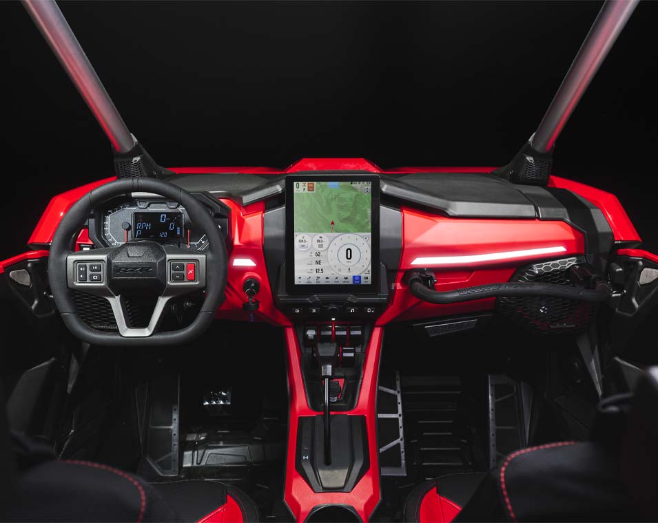 A vitória começa por dentro, e o RZR Pro R não é exceção. O seu habitáculo foi cuidadosamente concebido para oferecer mais conforto e conveniência, permitindo-te percorrer maiores distâncias, conduzir com mais intensidade e chegar em primeiro lugar.